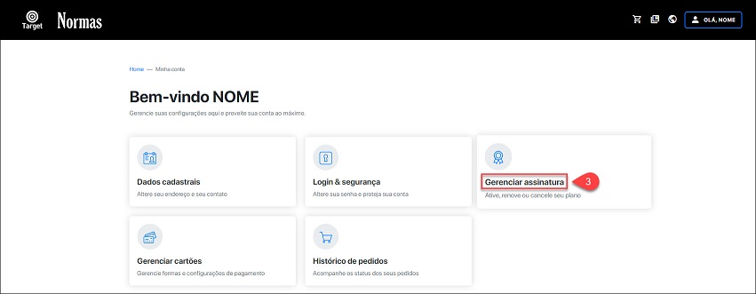 - Acesse o menu e clique em "Minha Conta".