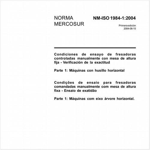 Especifica os ensaios geométricos e os de usinagem, de aplicação geral e as fresadoras de exatidão normal com mesa de altura fixa e com eixo árvore horizontal. Também especifica as tolerâncias aplicadas correspondentes aos ensaios mencionados.