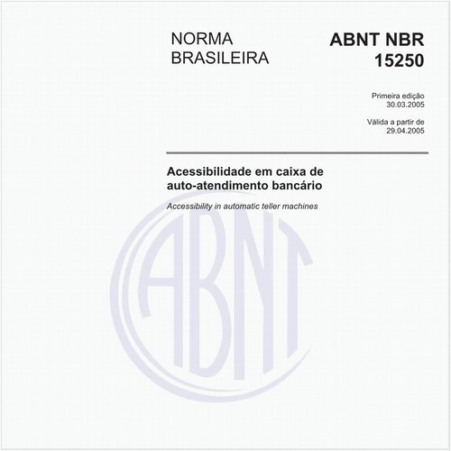 Esta Norma fixa os critérios e parâmetros técnicos de acessibilidade a serem observados quando do projeto, construção, instalação e localização de equipamentos destinados à prestação de informações e serviços de auto-atendimento bancário.