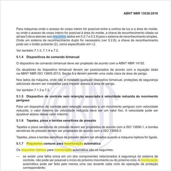 Sobre "Segurança de máquinas — Máquinas injetoras de plásticos e borracha", Quais os requisitos básicos para monitoração automática?