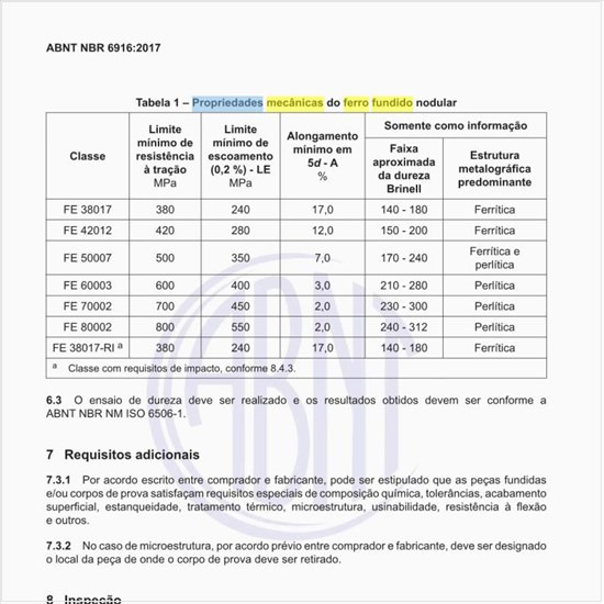 Sobre "Ferro fundido nodular ou ferro fundido com grafita esferoidal — Especificação", Quais as propriedades mecânicas do ferro fundido nodular?