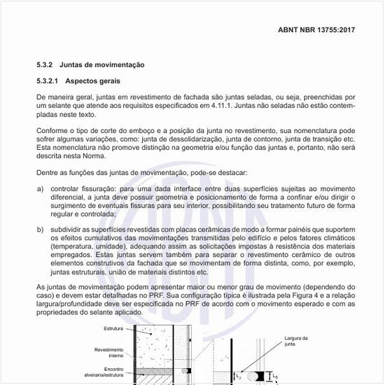 Sobre "Revestimentos cerâmicos de fachadas e paredes externas com utilização de argamassa colante - Projeto, execução, inspeção e aceitação - Procedimento", O que são juntas de movimentação?