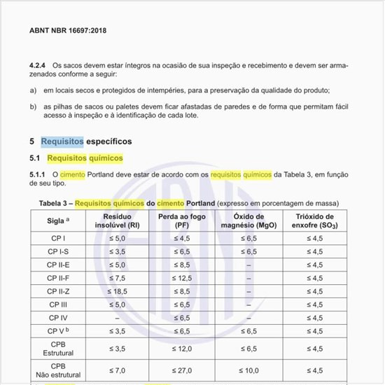 Sobre "Cimento Portland - Requisitos", Quais são os requisitos químicos do cimento Portland?