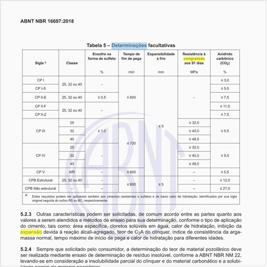 Sobre "Cimento Portland - Requisitos", Quais são as determinações facultativas?