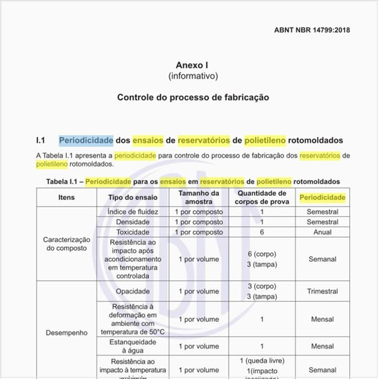 Qual a periodicidade dos ensaios de reservatórios de polietileno rotomoldados?