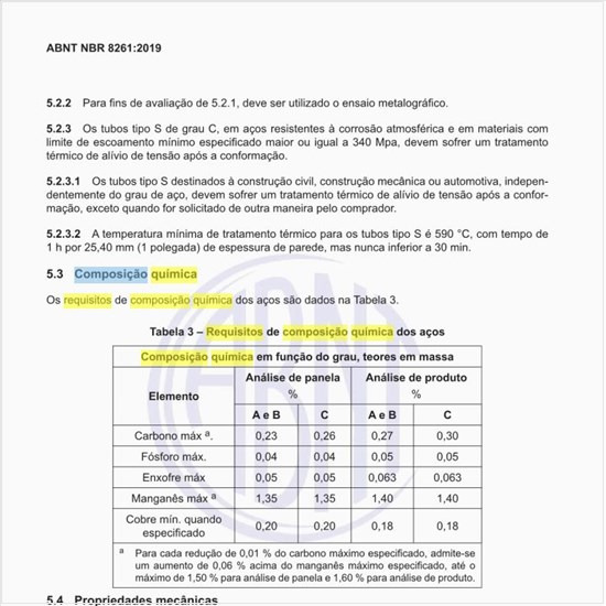 Sobre "Tubos de aço-carbono, com e sem solda, de seção circular, quadrada ou retangular para usos estruturais - Requisitos", Quais os requisitos de composição química dos aços?
