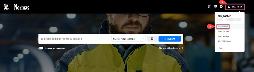 - Acesse o menu e clique em "Minha Conta".