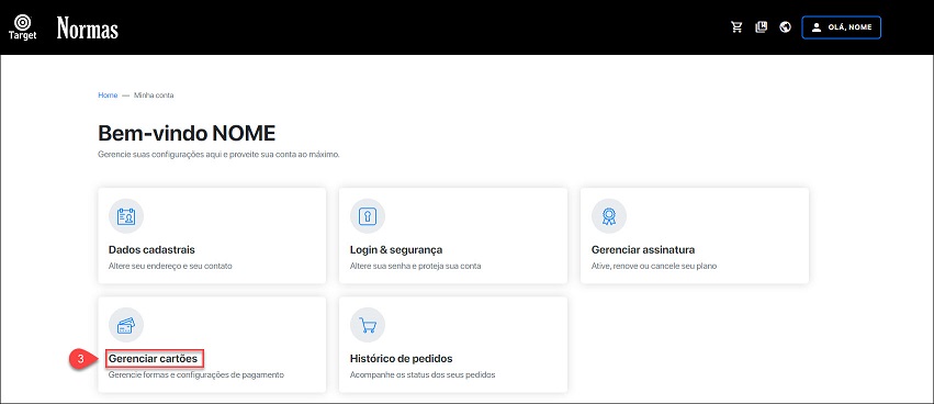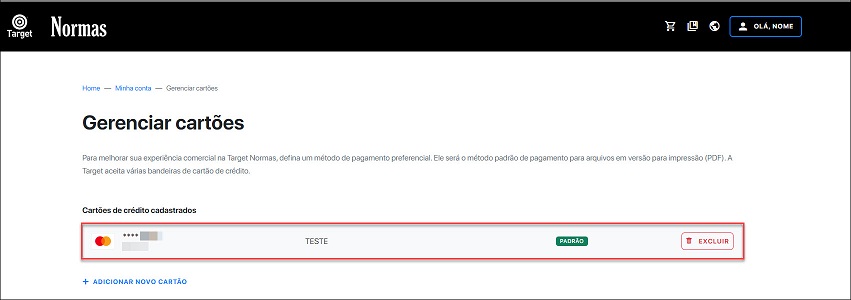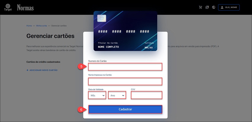 - Preencha os dados do cartão e em seguida, clique em "Cadastrar".