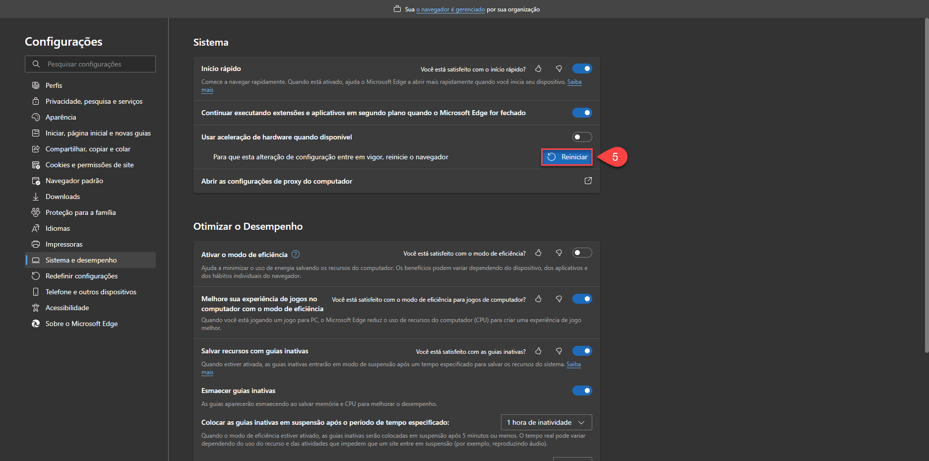 - E, por fim, precisaremos reiniciar o navegador para que as configurações sejam aplicadas;